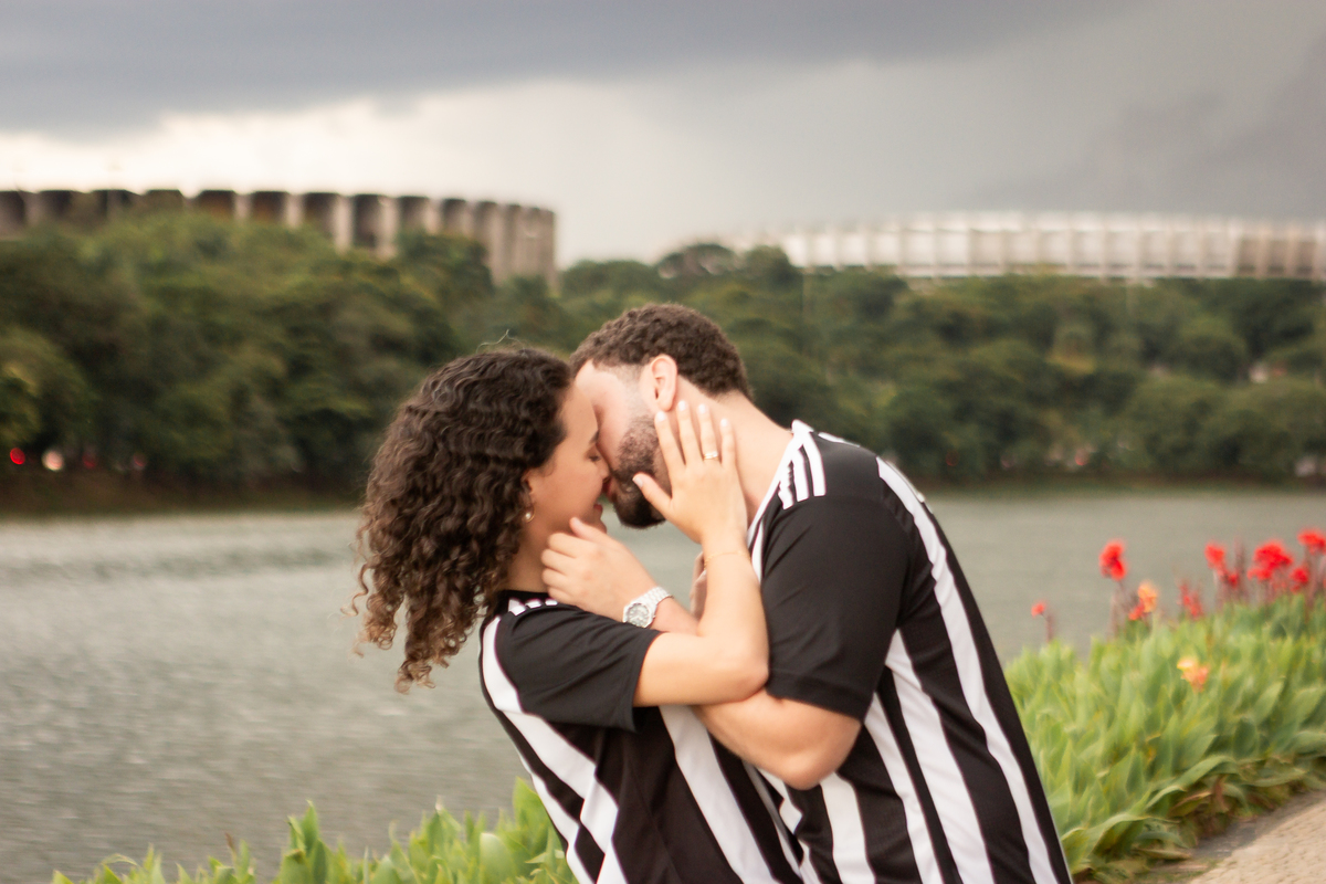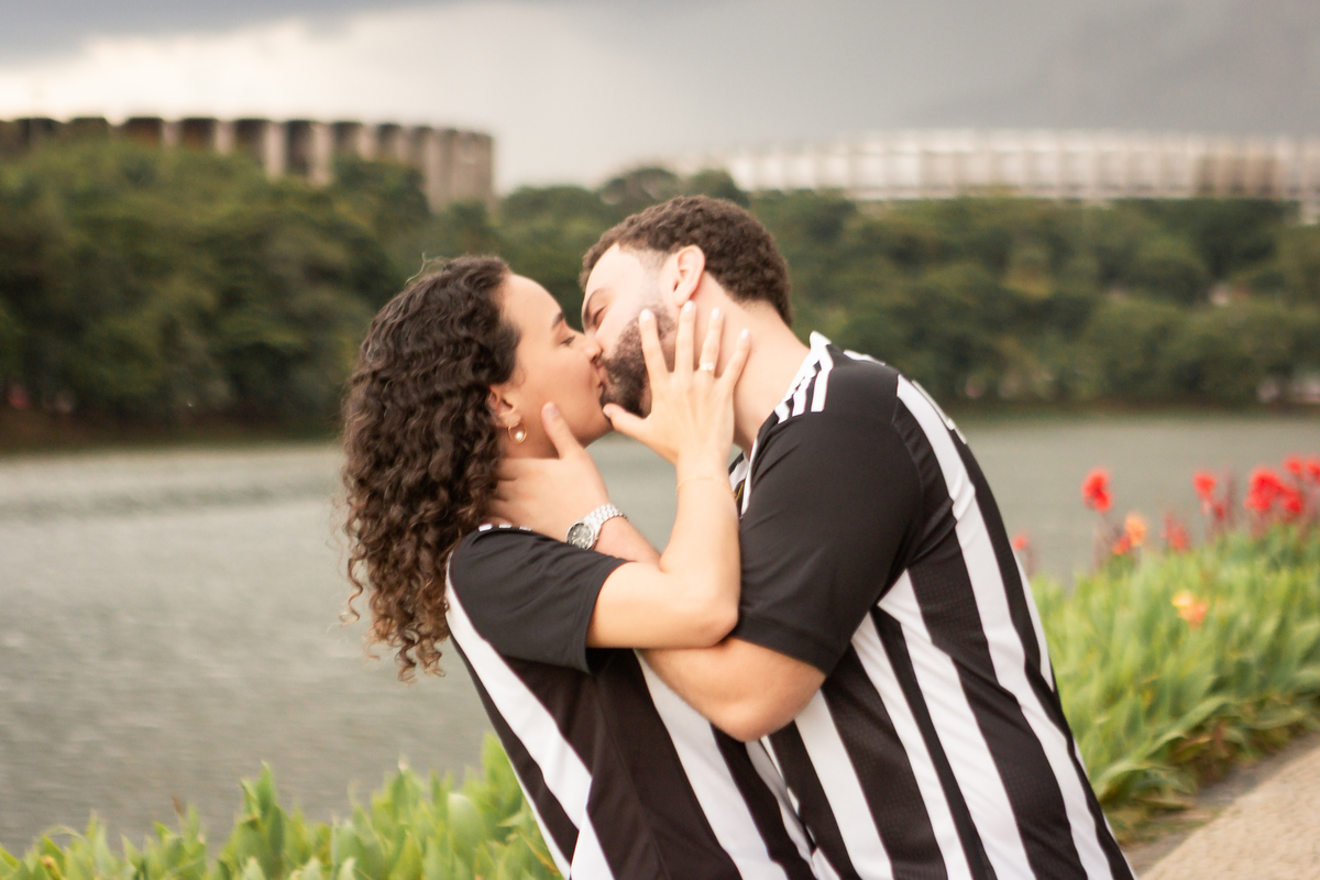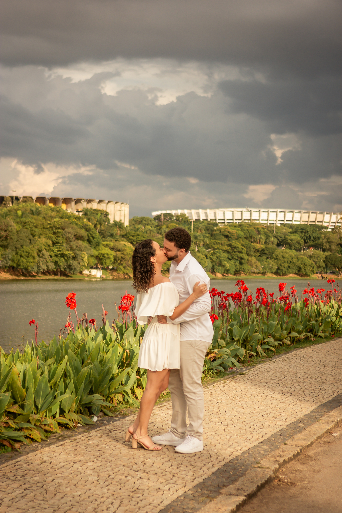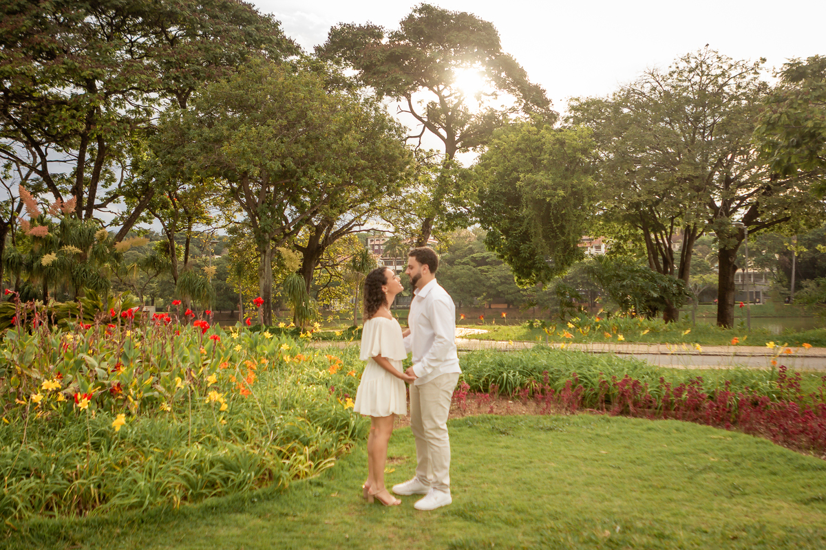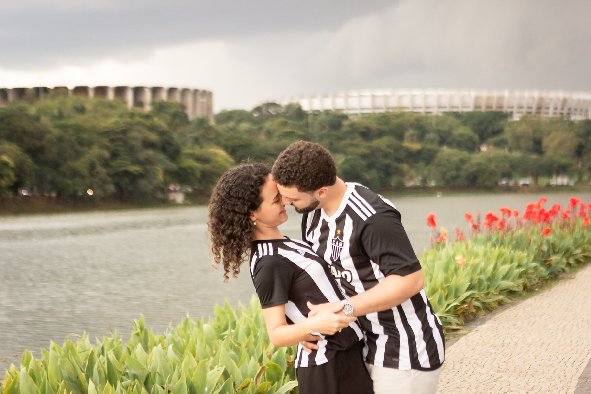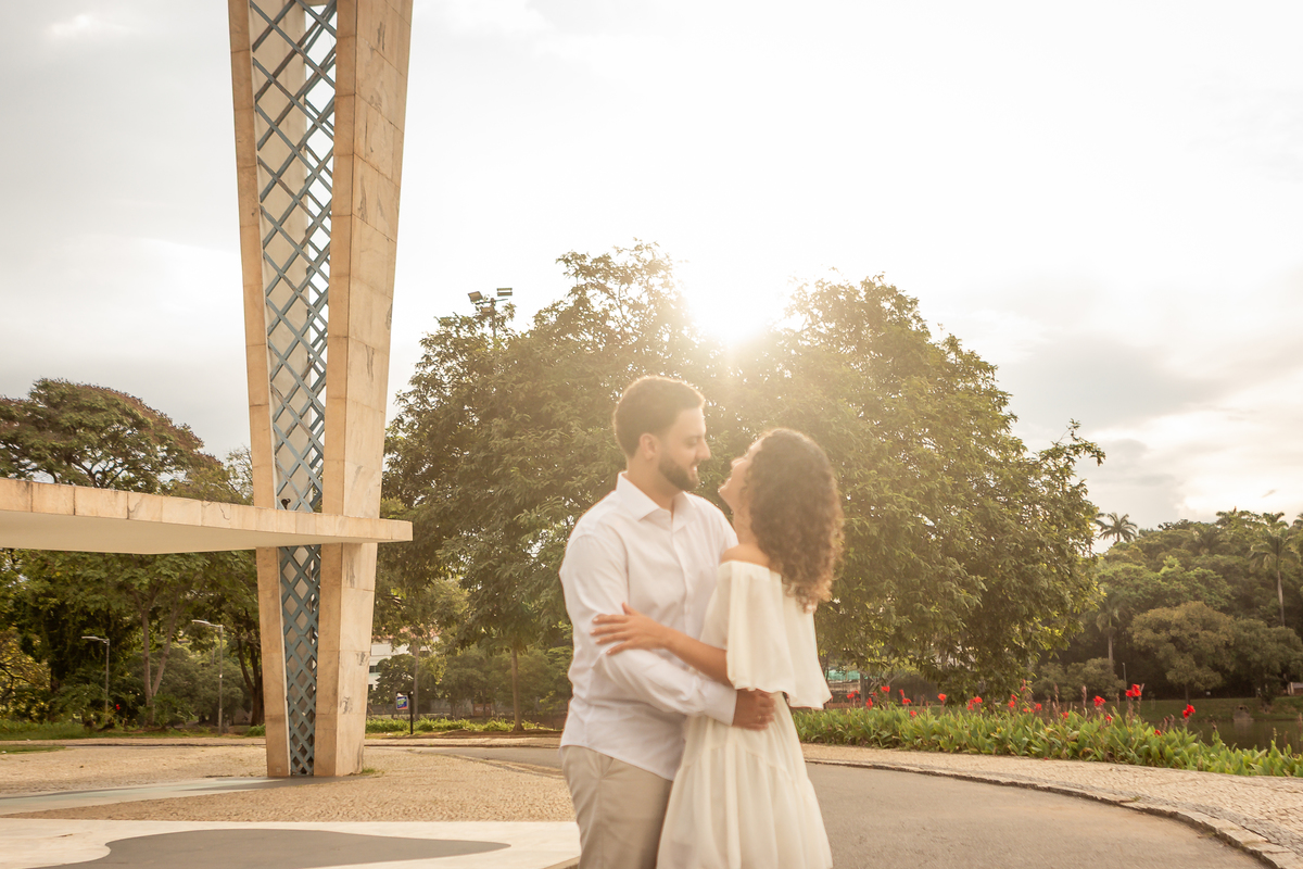 Com a mistura entre natureza, arquitetura e luz suave no fim da tarde, a Pampulha proporciona um cenário perfeito para fotos de casal leves, elegantes e atemporais.