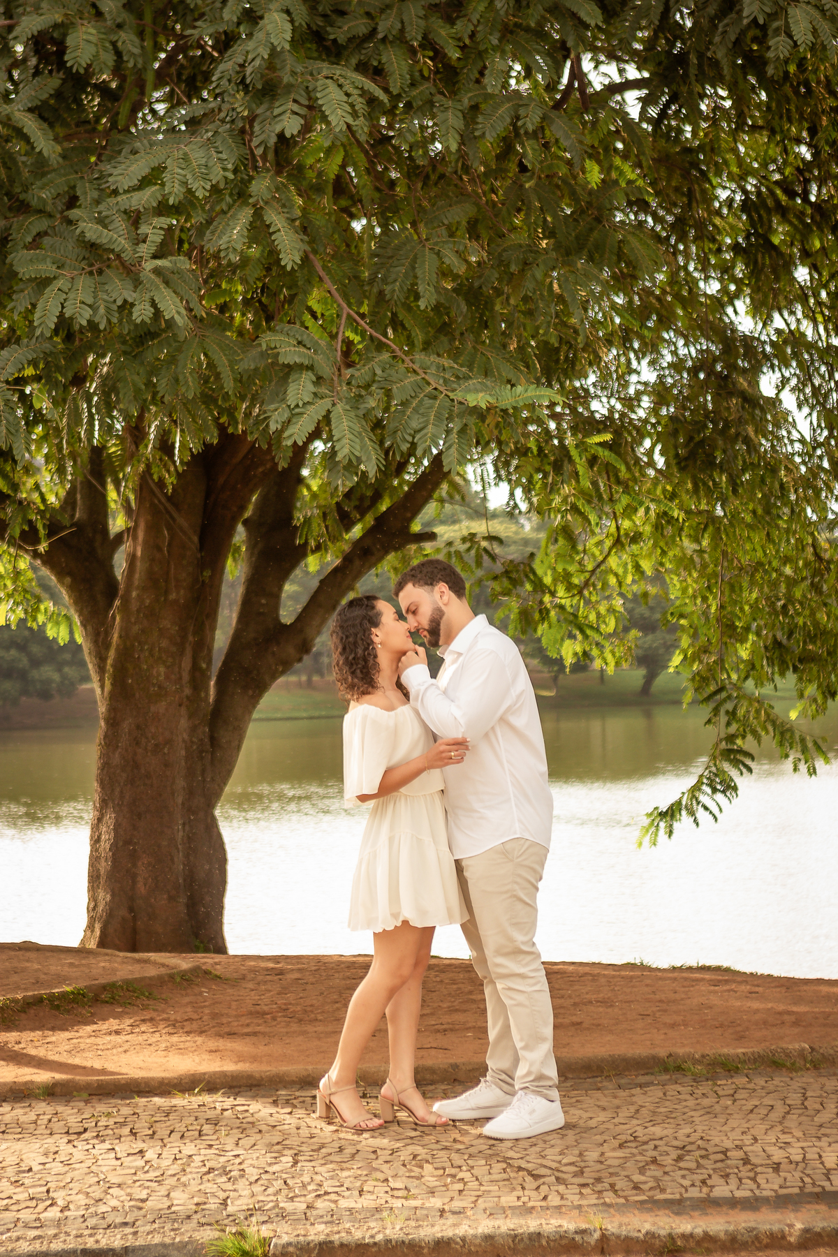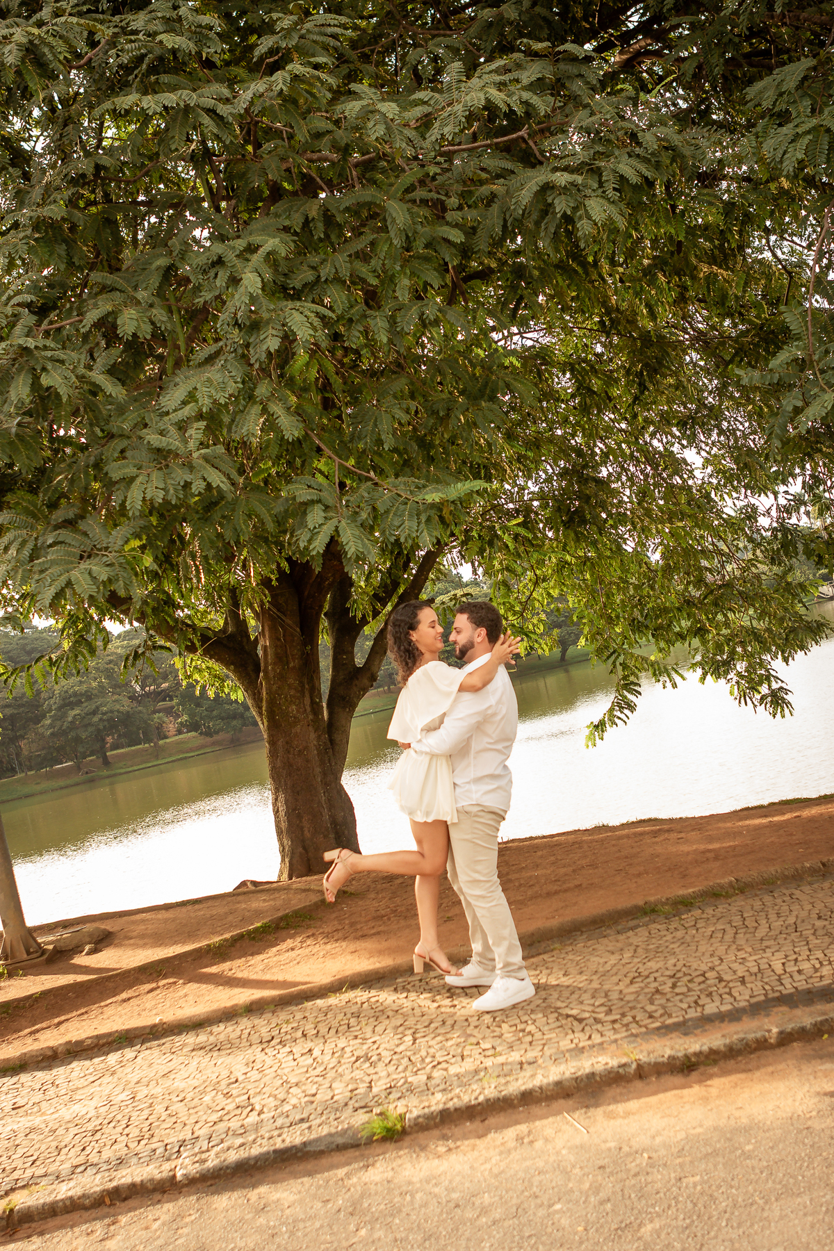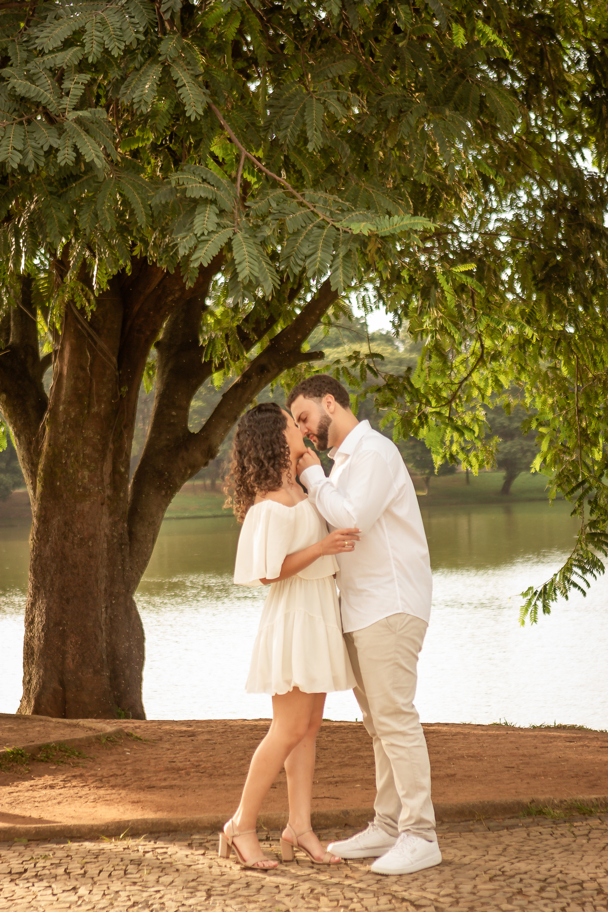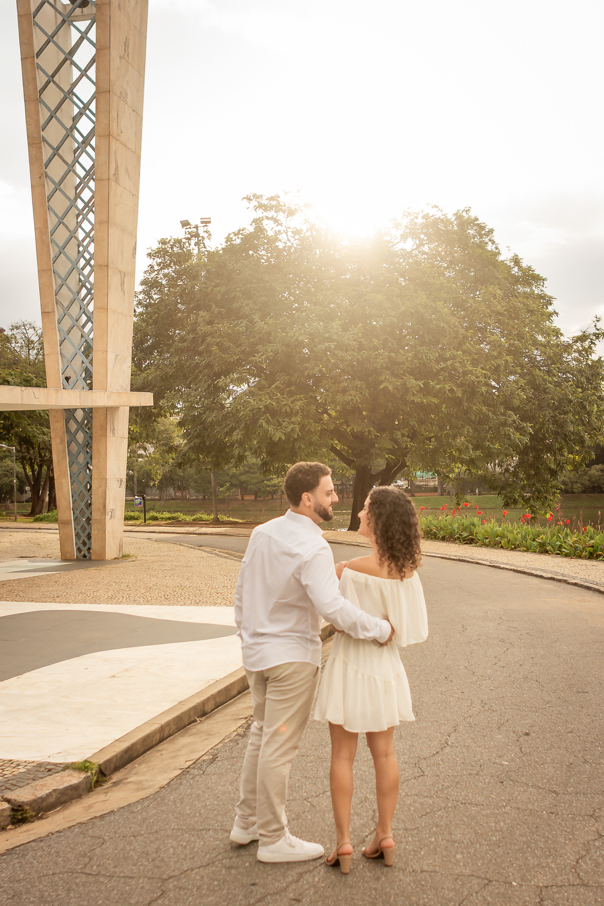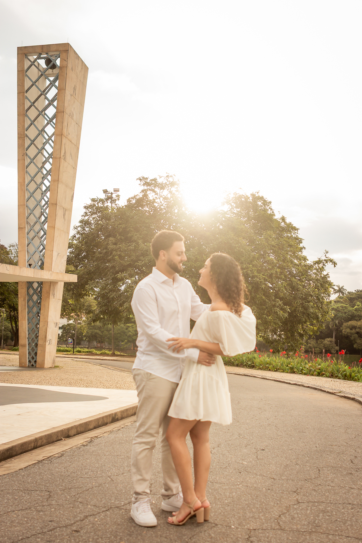 Com a mistura entre natureza, arquitetura e luz suave no fim da tarde, a Pampulha proporciona um cenário perfeito para fotos de casal leves, elegantes e atemporais.